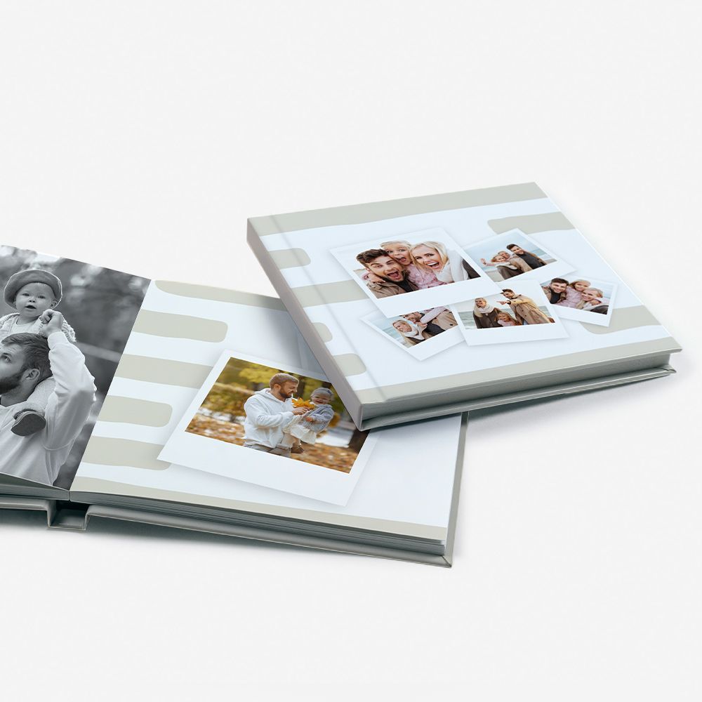 A capa rígida em cartão duro oferece proteção adicional e um acabamento elegante ao teu álbum.