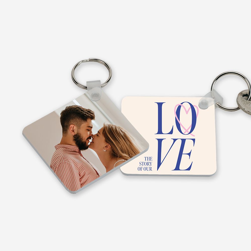 Com formato quadrado e personalização total (100%) em ambas as faces, este porta-chaves transforma qualquer foto ou frase num presente romântico e inesquecível.